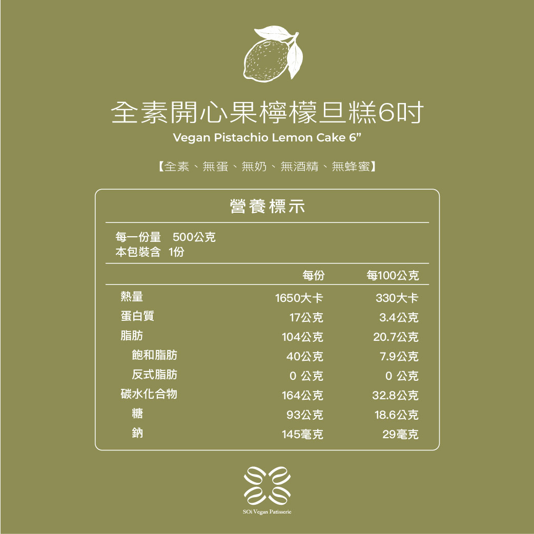 ●主要成分:義大利開心果、日本麵粉、初榨橄欖油、可可脂、香草莢、杏仁粉、鹽、豆奶、椰奶、檸檬、糖、卵磷脂、玉米粉、葵花卵磷脂、有機小蘇打、無鋁泡打粉。